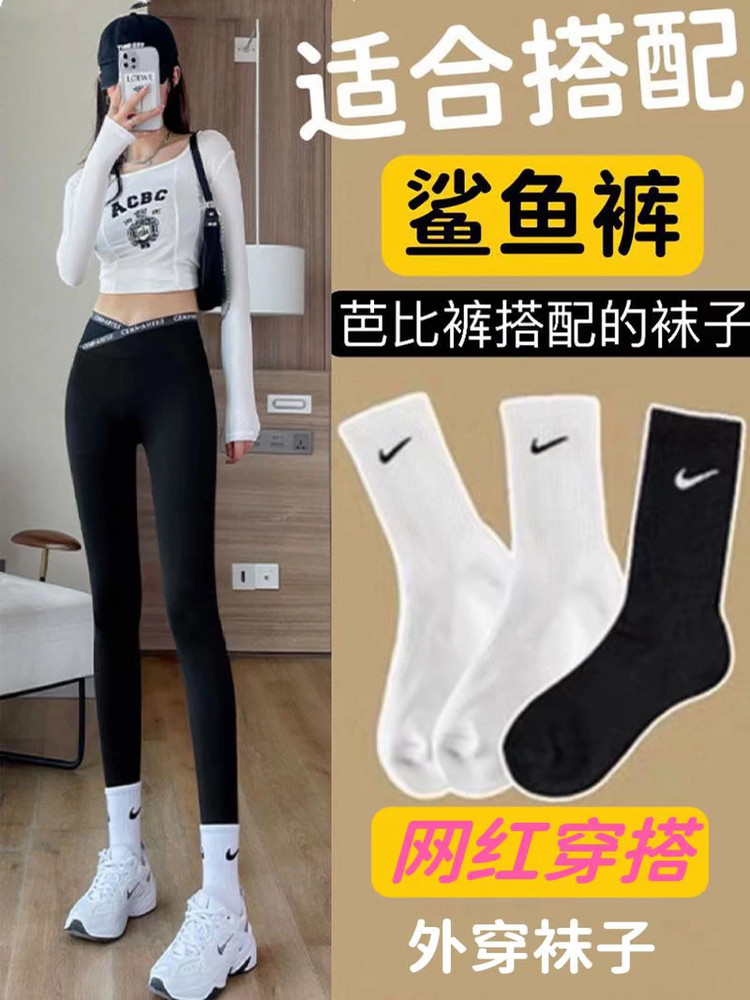 Trendy White Mid-Calf Cotton Socks for Women to Pair with Shark Pants, Popular Online, Suitable for Wearing Outside, Barbie Yoga Long Socks for Winter