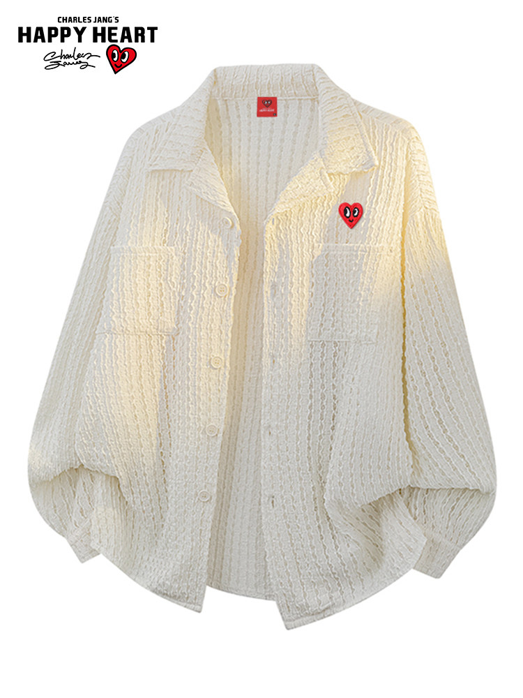 Charles Peach Heart 2025 Jacquard Long Sleeve Shirt Unisex Casual Jacket Single-Breasted Jacket