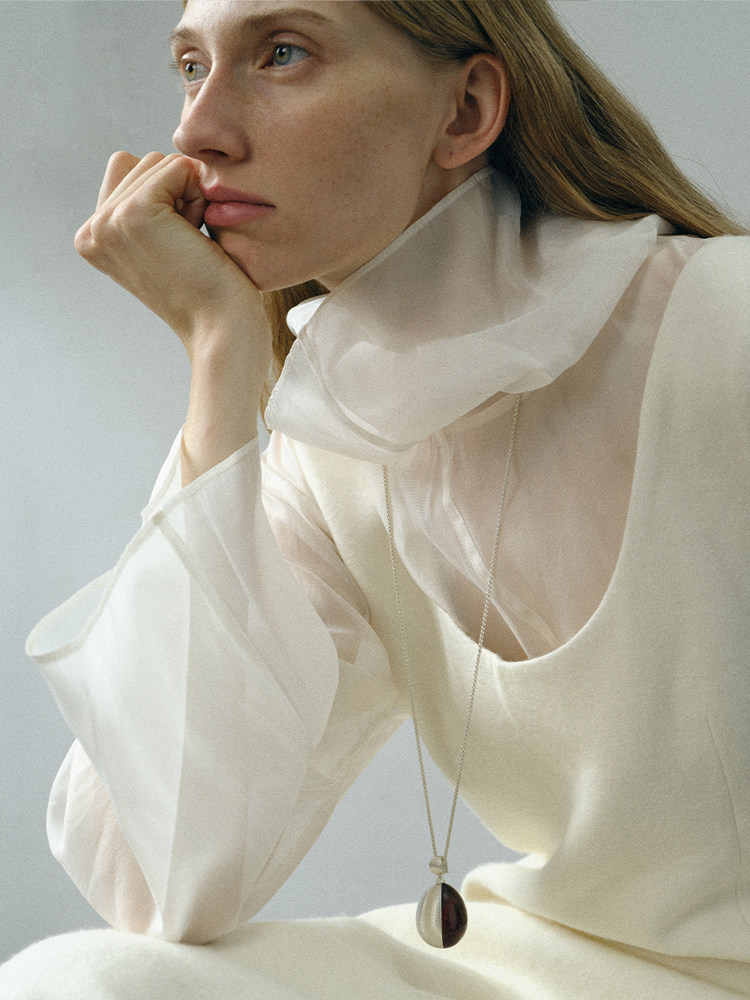 Khemia Sterling Silver Autumn and Winter Chroma Necklace, Hand-Brushed Original Designer Detachable Magnetic Color Core Chain