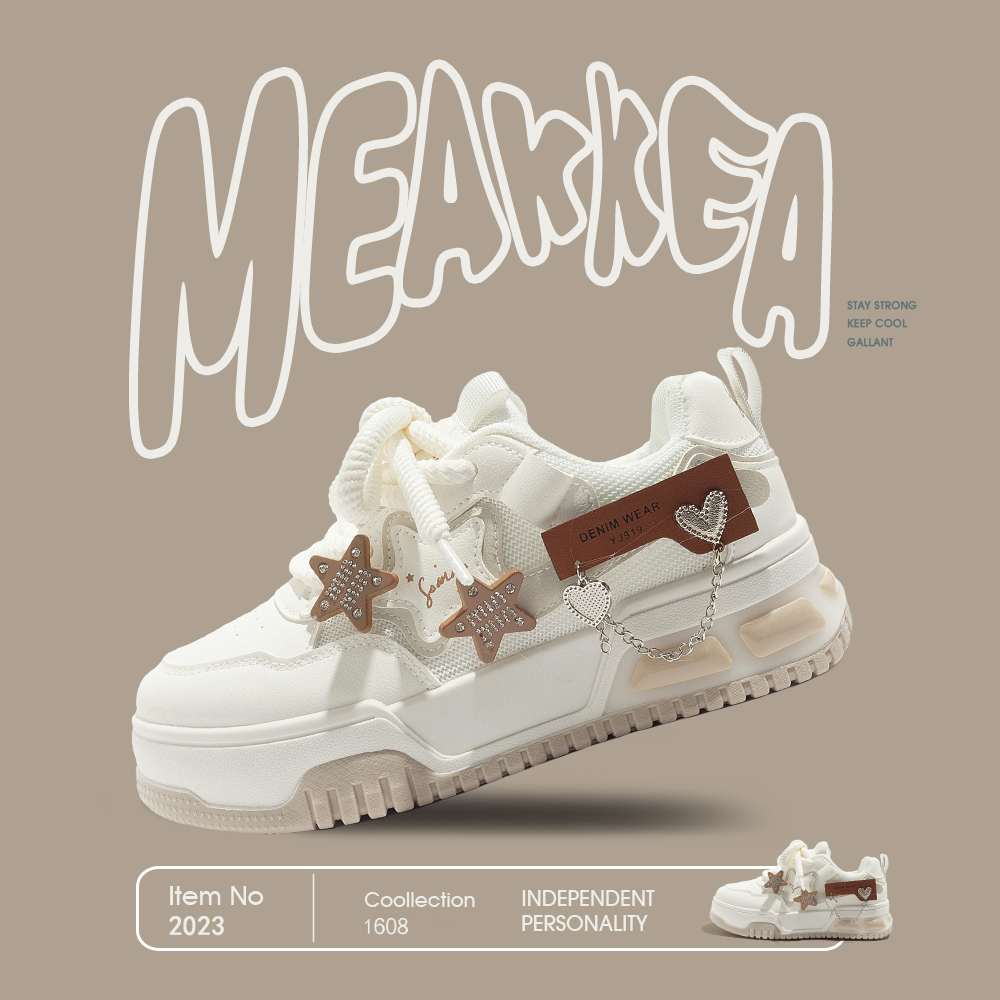 Meakkea Fleece-Lined Star-Patterned White Sneakers for Women, 2025 Autumn and Winter New Versatile Thick-Soled Sports Casual Shoes