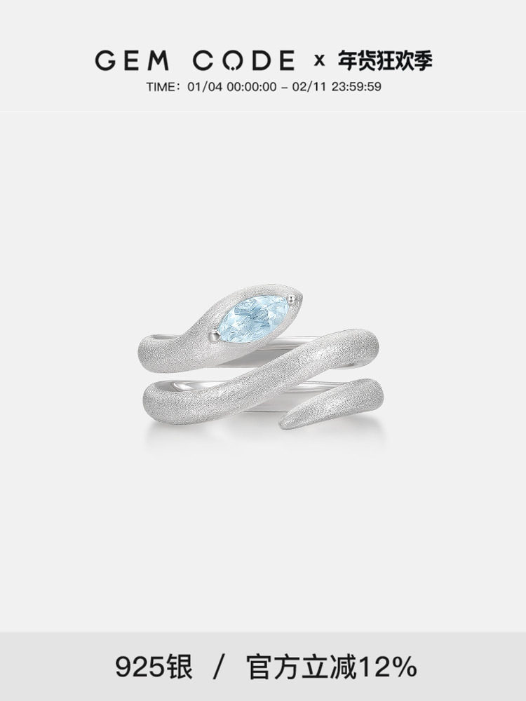 S925 Sterling Silver Brushed Aquamarine Ring for Women, Niche Frosted Texture Closed Band Ring, Couple Ring