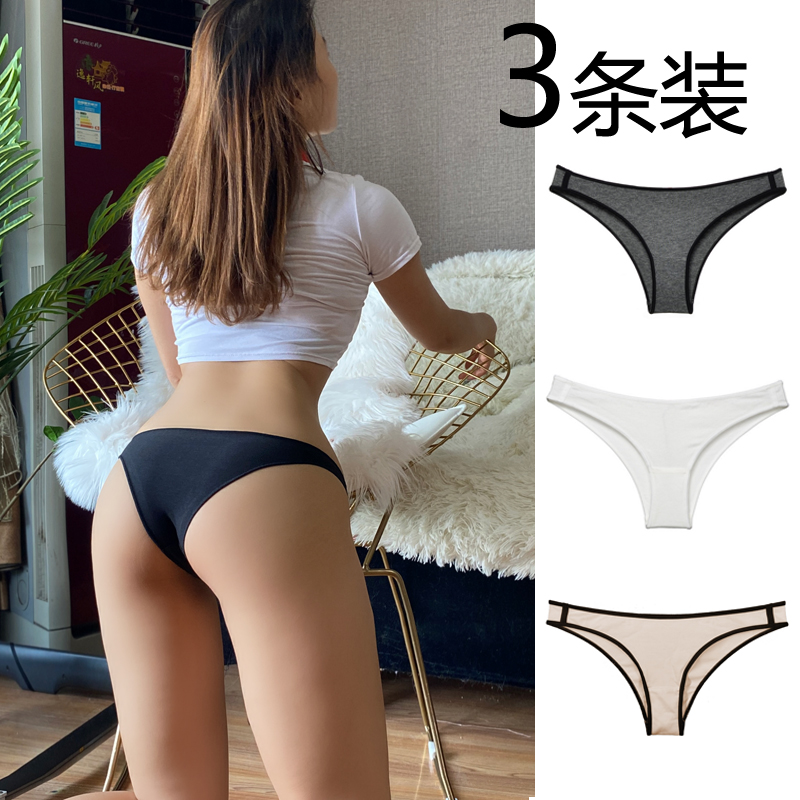 3-Pack of Sexy Solid Color European and American Style Narrow-Cut High-Slit Low-Waist Pure Cotton Half-Coverage Hip Briefs for Women, Sports Style Triangle Panties