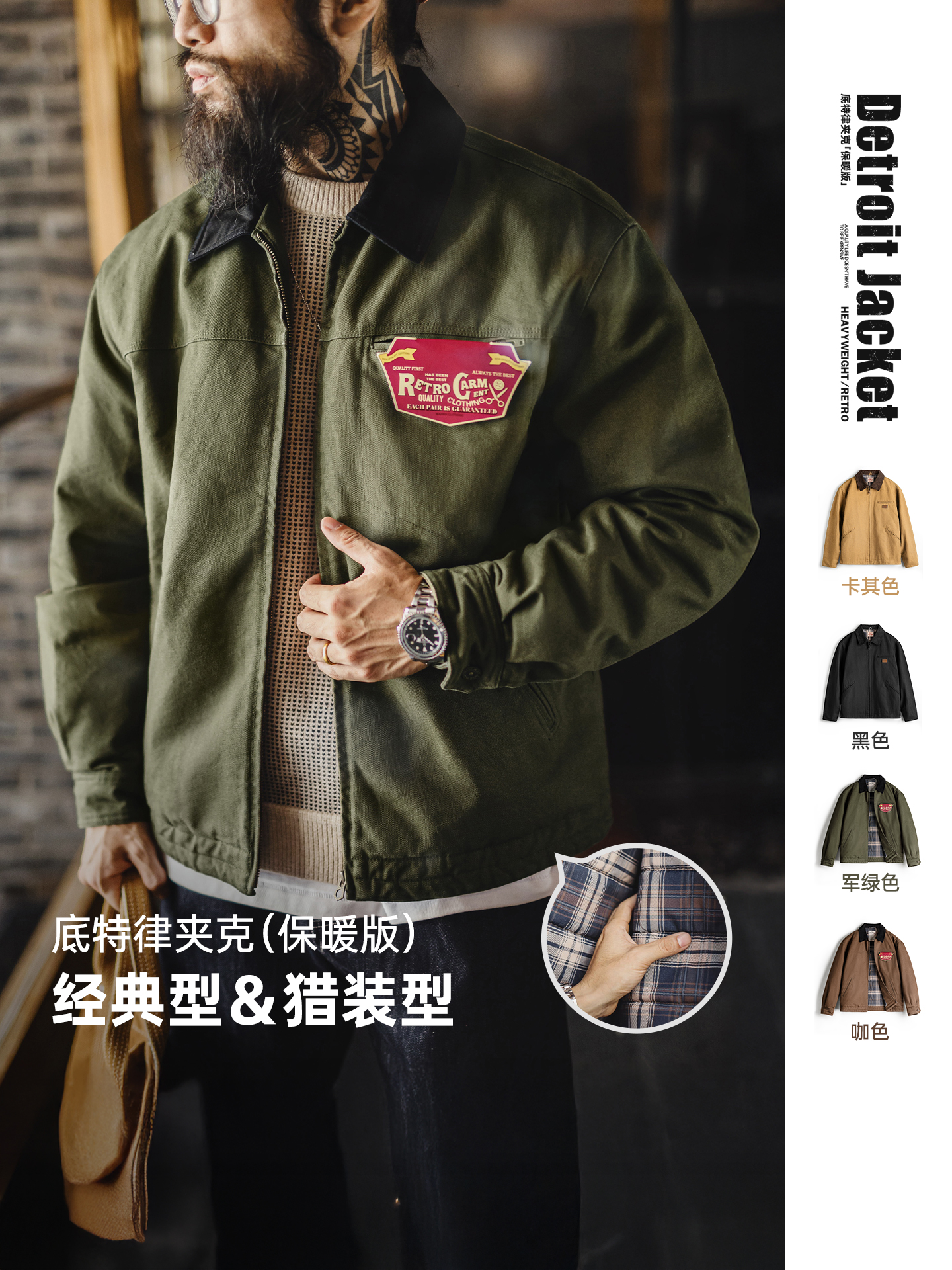 Madden Workwear American Retro Detroit Cotton Jacket Interstellar Hunting Jacket J001 Turn-Down Collar Jacket for Men Autumn and Winter