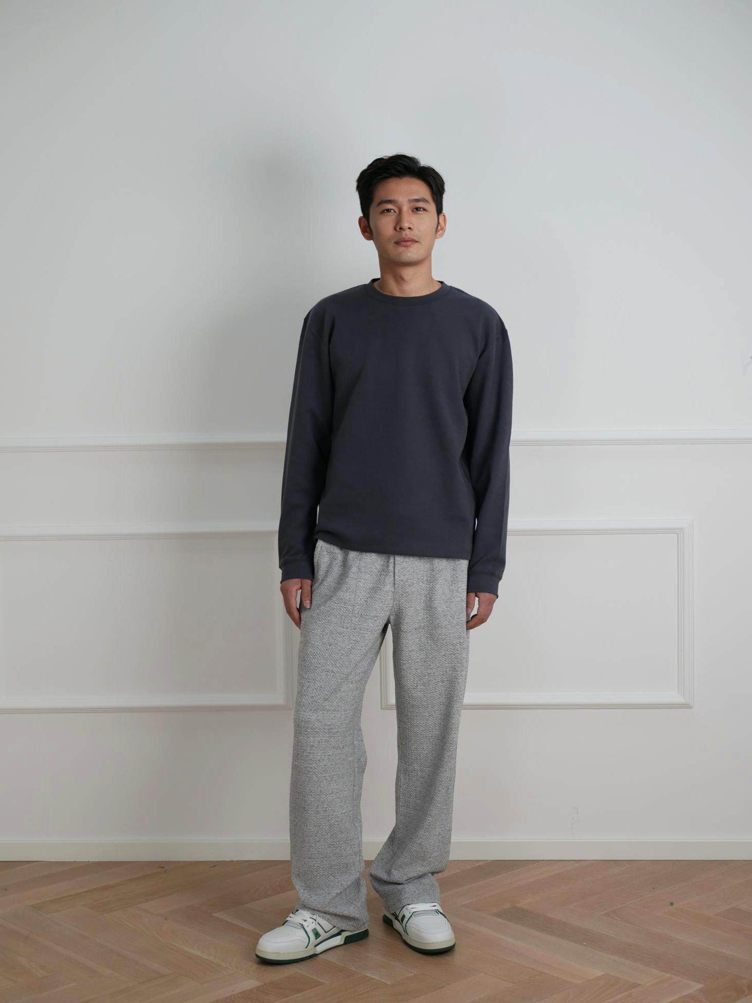 Whimnotion Hand-Stitched Mohair Wool Blend Henry Collar Sweater Casual Drop Shoulder Pullover Top for Men