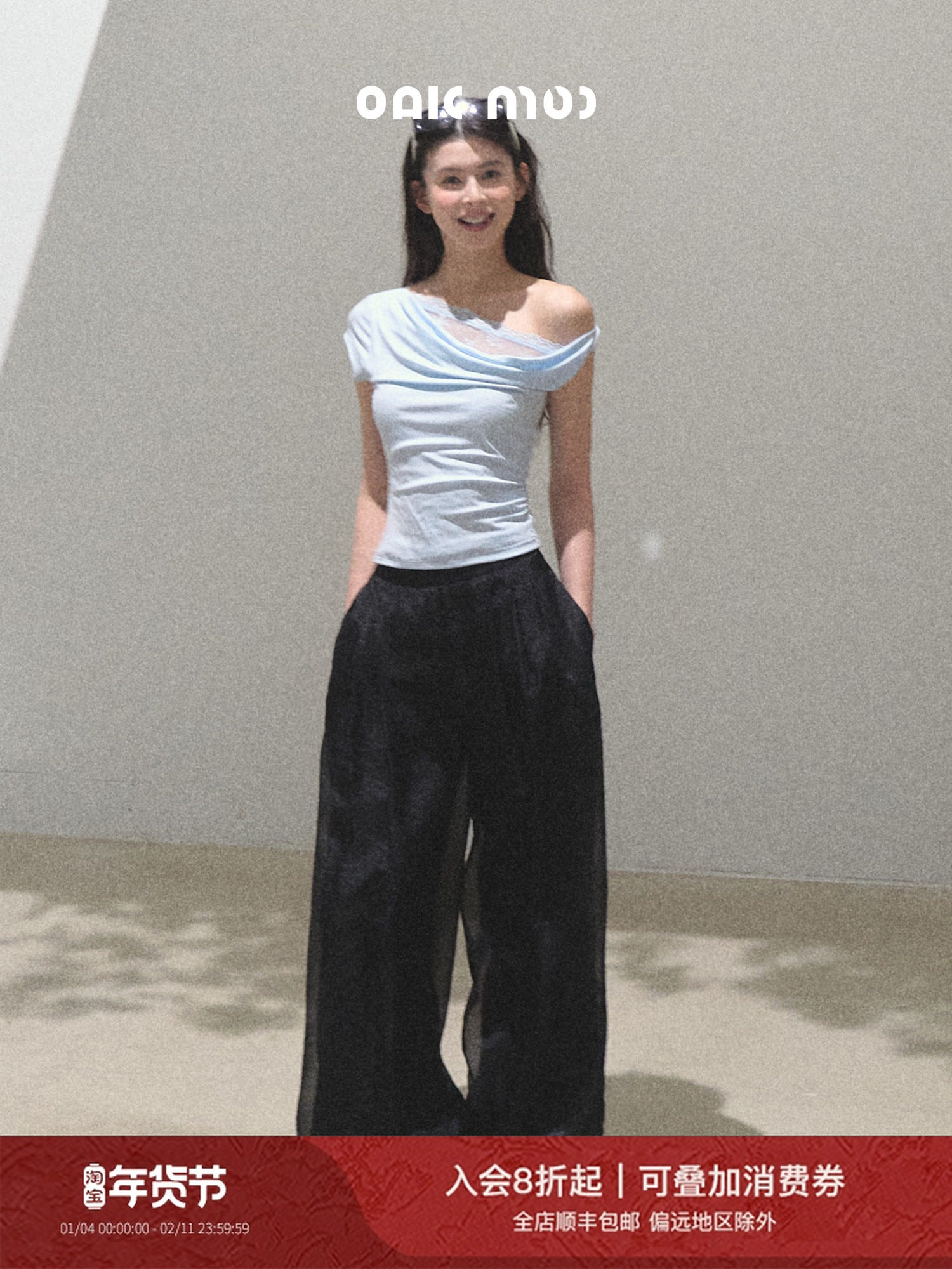 Oakmoo/ "Season of Love" Pure Desire Asymmetrical Shoulder Design Tencel Knit Top T-Shirt