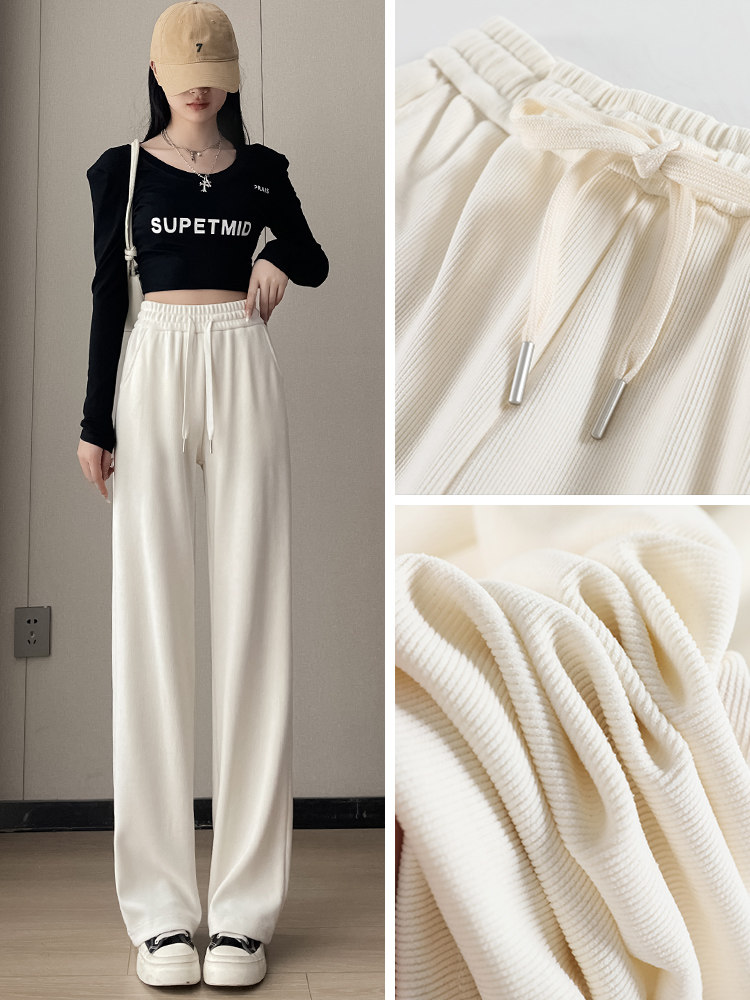 Narrow White Wide-Leg Pants for Women, Spring, Autumn, and Winter 2025, Drapey Chenille with Fleece, Petite Straight-Leg Casual Pants