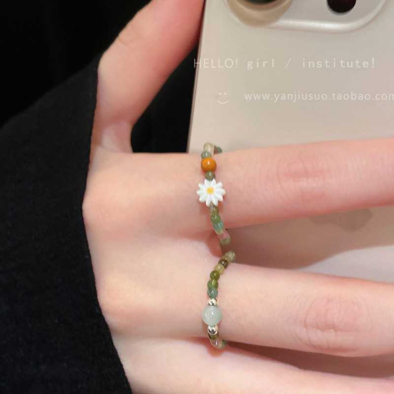 Myanmar Natural Jade A-Grade Ice Type Light Fruit Green Round Bead Bracelet 5mm Women's Green Single Circle