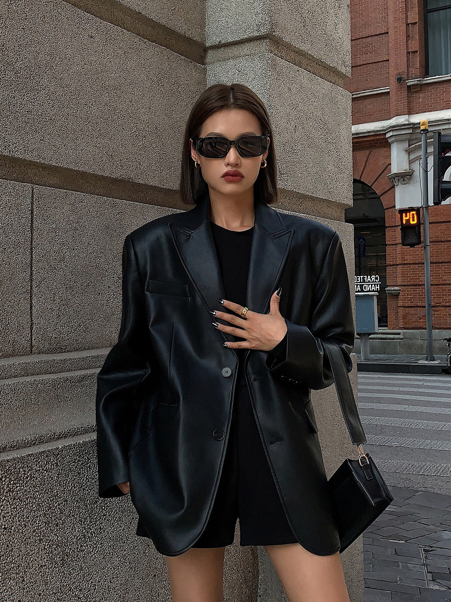 Retro Loose Black Pu Leather Suit Jacket for Women 2026 Autum New High-End Texture Casual Suit Top