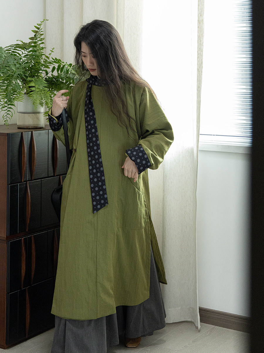 Chen Aihuan's Original Round-Neck Robe with a High-End Feel, Suitable for Petite Individuals to Wear to Work, as a Trench Coat for Daily Commuting with Chinese Elements