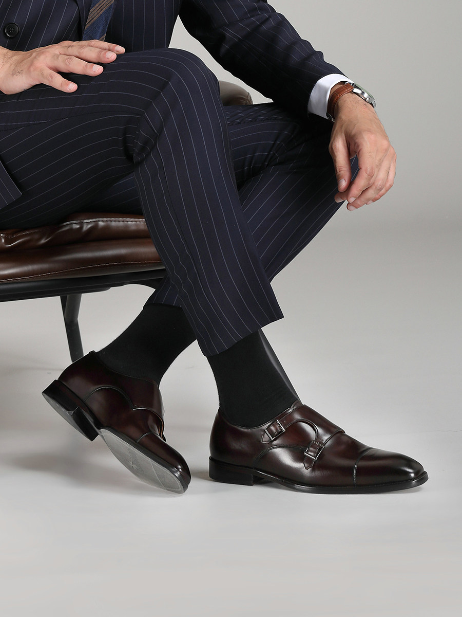 2023 New Men's Leather Shoes with Buckle, Wedding Groom Shoes, Large Size Genuine Leather, Breathable Business Formal Monk Shoes for Banquets