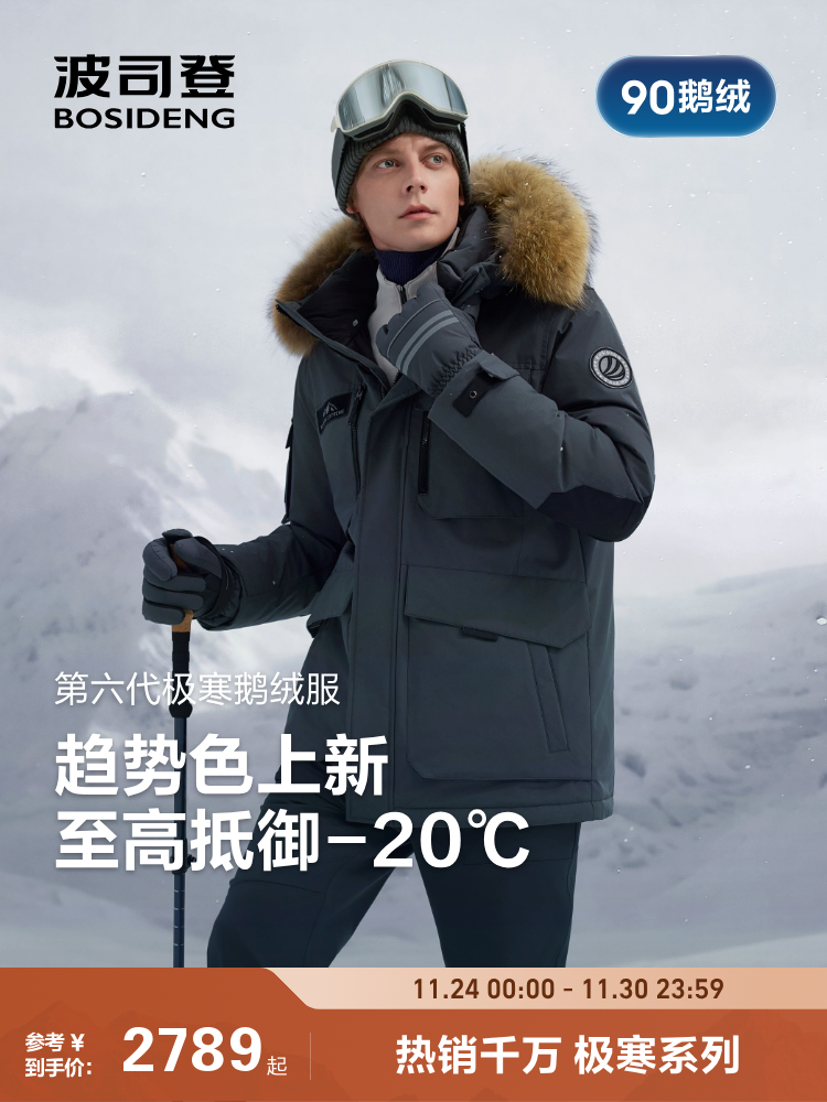 【25 Extreme Cold 90% Goose Down】Bosideng Outdoor Couple Workwear Warm Fur Collar Mid-Length down Jacket for Men and Women