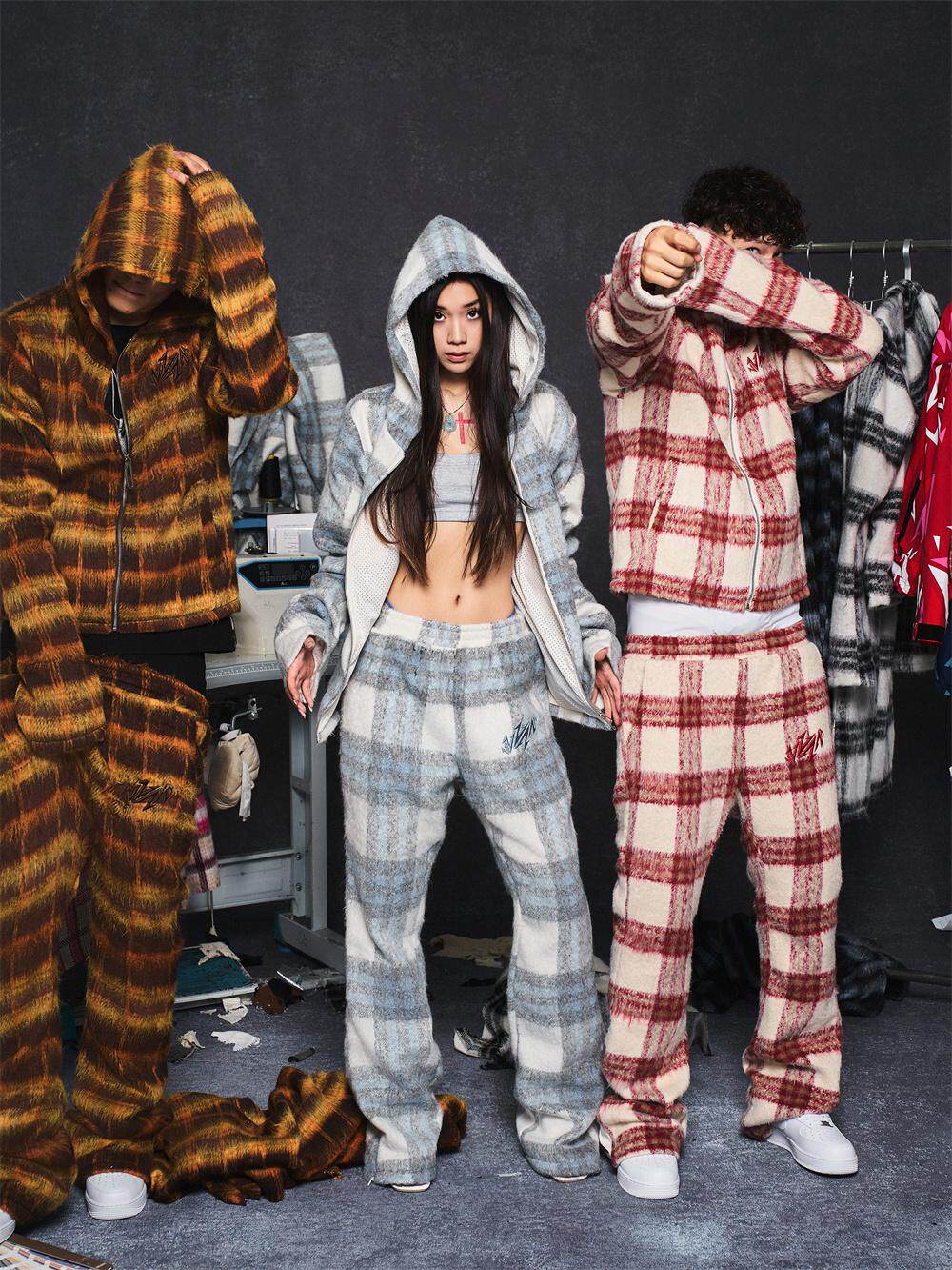 【Vaka Typeshyt】2024Fw Mohair Jacquard Hooded Knit Jacket Set, Unisex Style