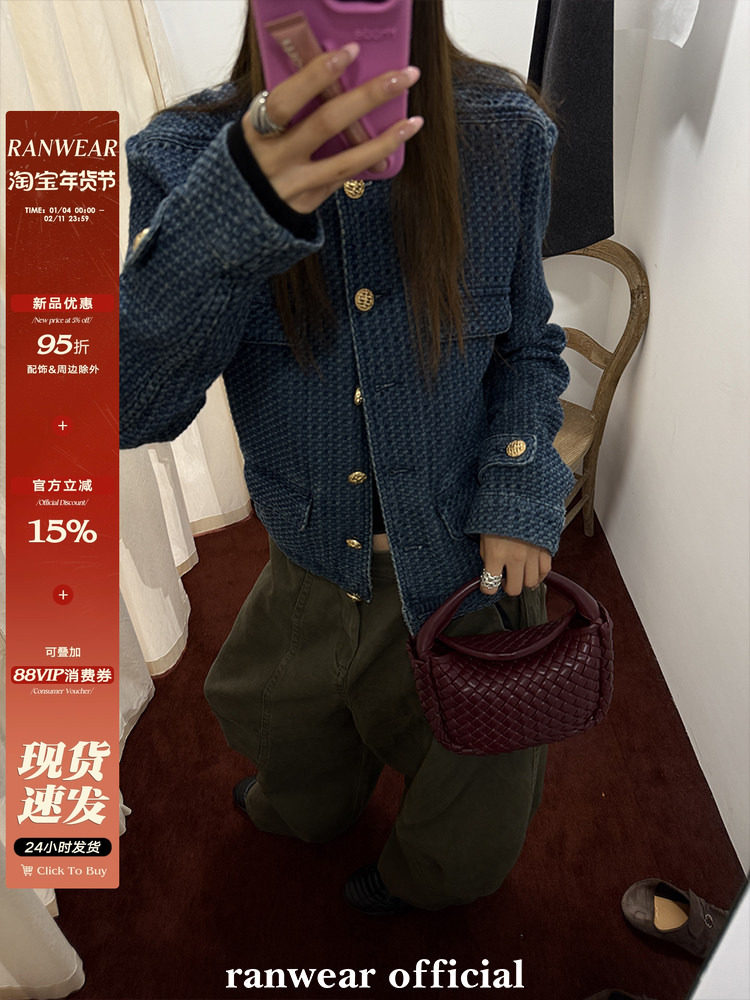 Ranwear Is a Popular Choice! Old Money Style, Niche Retro Denim Chanel-Style Short Jacket with Stand Collar