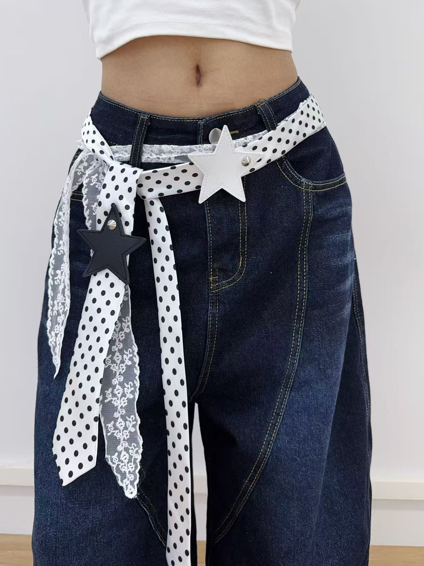 Polka Dot Silk Scarf Belt Paired with Jeans, Waist Accessory for Women, High-End Long Vintage Lace Waistband to Match with Dresses