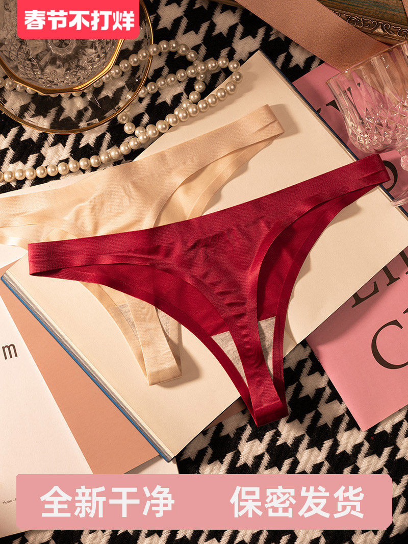 Ice Silk Seamless Panties One-Piece Sexy Thong for Women Burgundy Sports Fitness Yoga Shark Pants Thin Base Layer