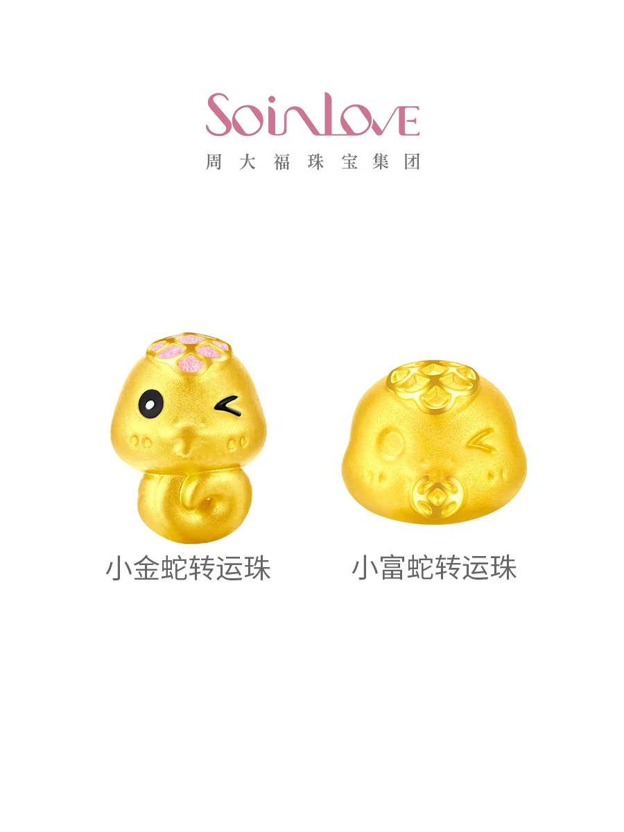 Chow Tai Fook Soinlove'Cute Pet' Little Golden Snake, Little Wealth Snake, Zodiac Snake, Gold, Pure Gold, Fortune Beads, Various Styles