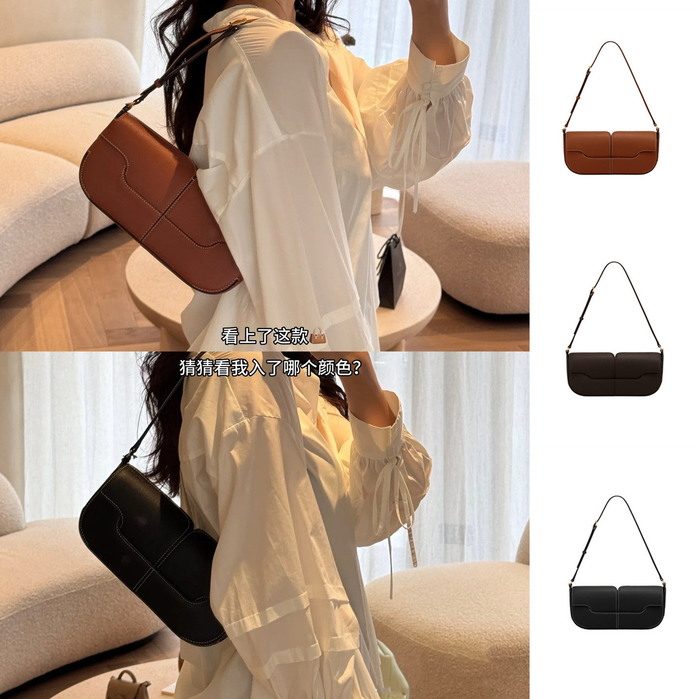 French Niche Brand Cowhide Baguette Bag Women's Fashionable Underarm Clutch Bag Light Luxury Handbag Pollen Shoulder Bag