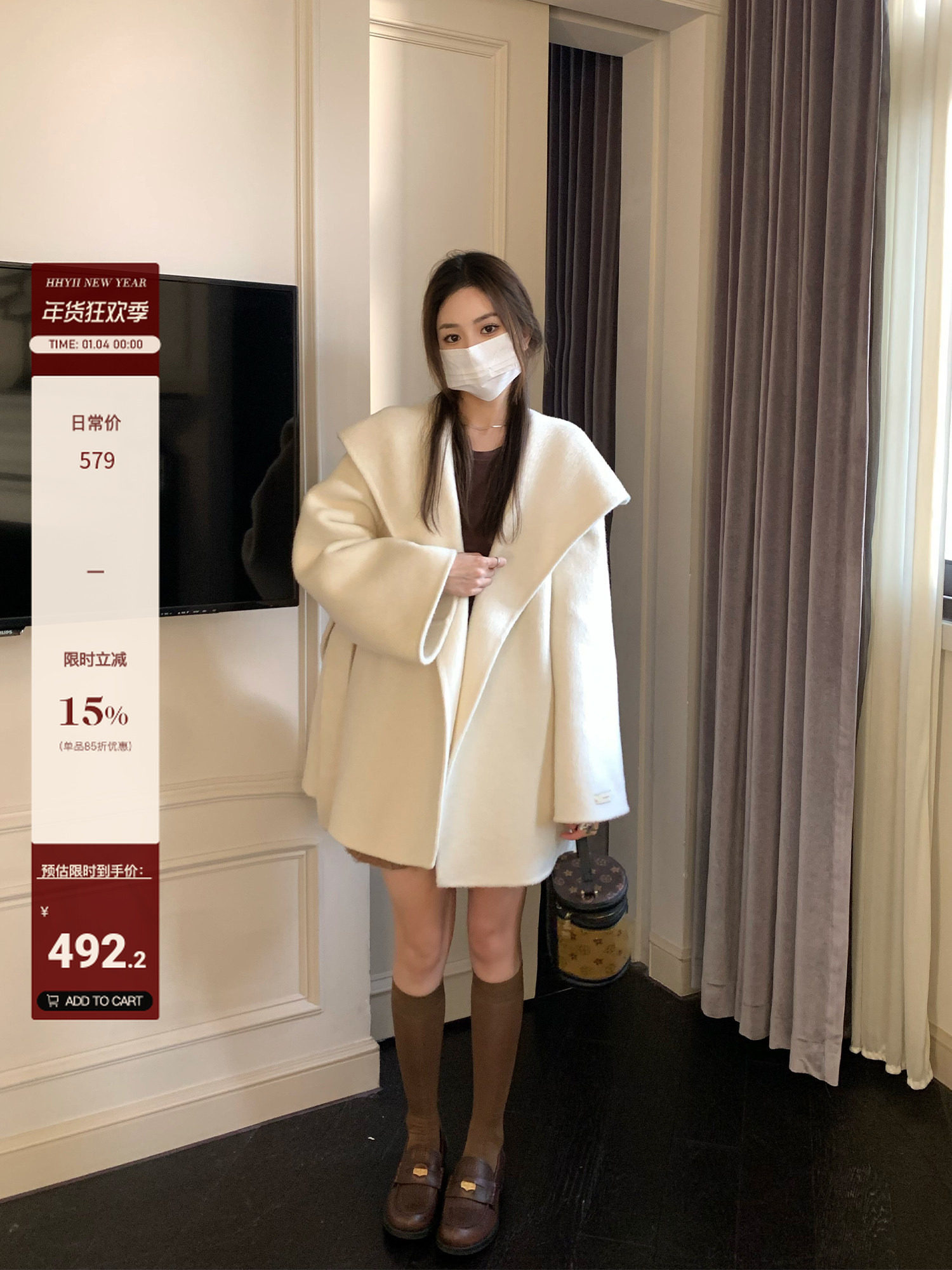 Hhyii Witch Cape Wool Coat for Women 2025 Winter New Style High-End Elegant Double-Sided Woolen Coat