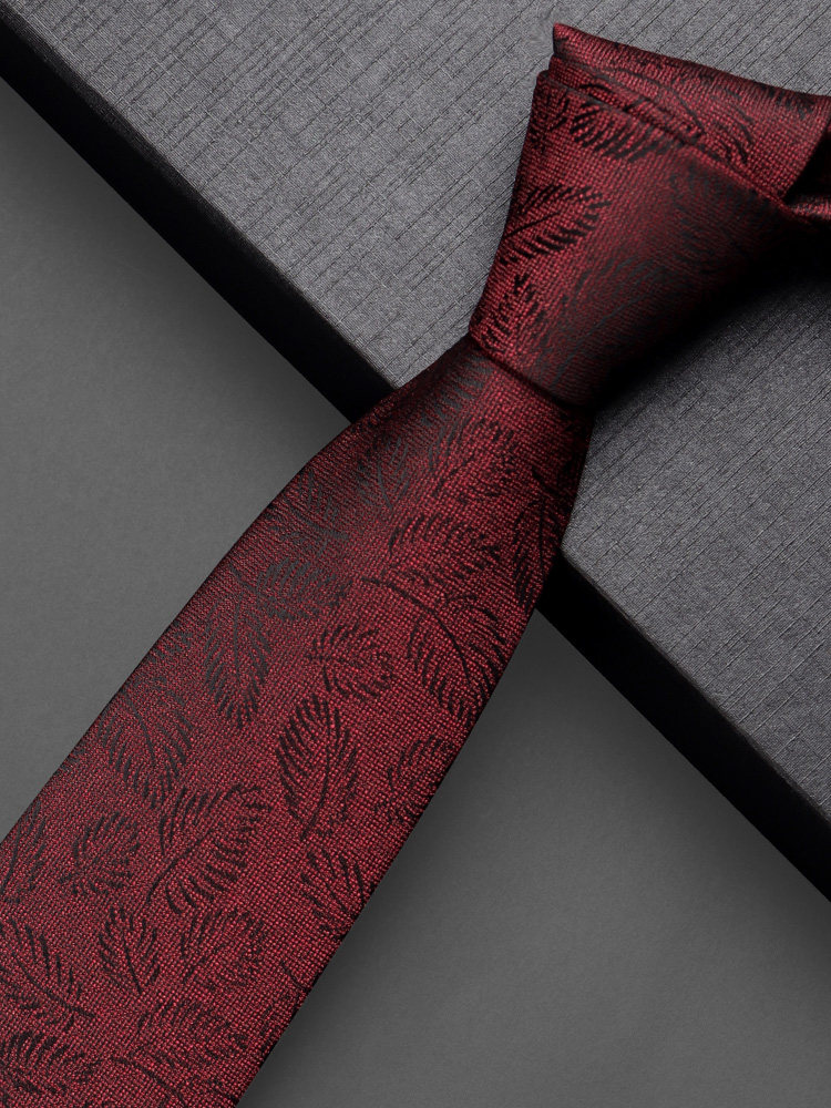 Retro Dark Red Leaf-Patterned Tie for Men, Hand-Tied Business Formal Wear, Professional Groom Wedding Suit, High-End Gift Box