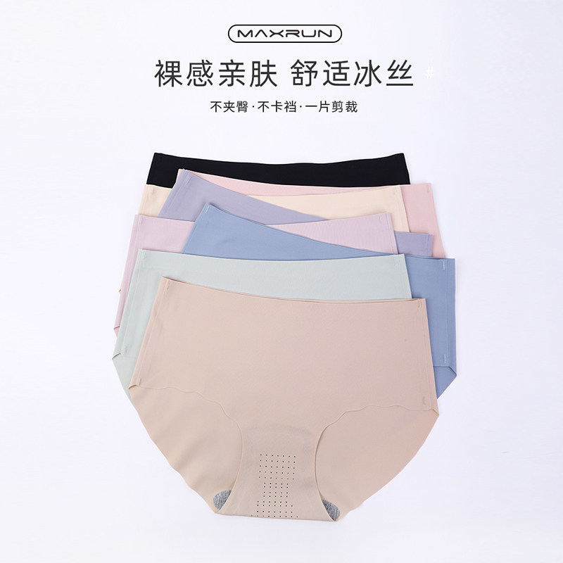 Maxrun Ice Silk Seamless Sports Underwear Breathable Quick-Drying One-Piece Invisible Summer Thin Fitness Yoga Briefs for Women