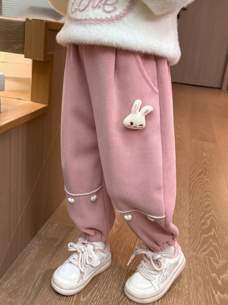 Girls' Rabbit Warm Sweatpants Autumn and Winter Style Baby Girl Thickened Fleece Pants Winter Wear Little Girl Casual Sports Pants