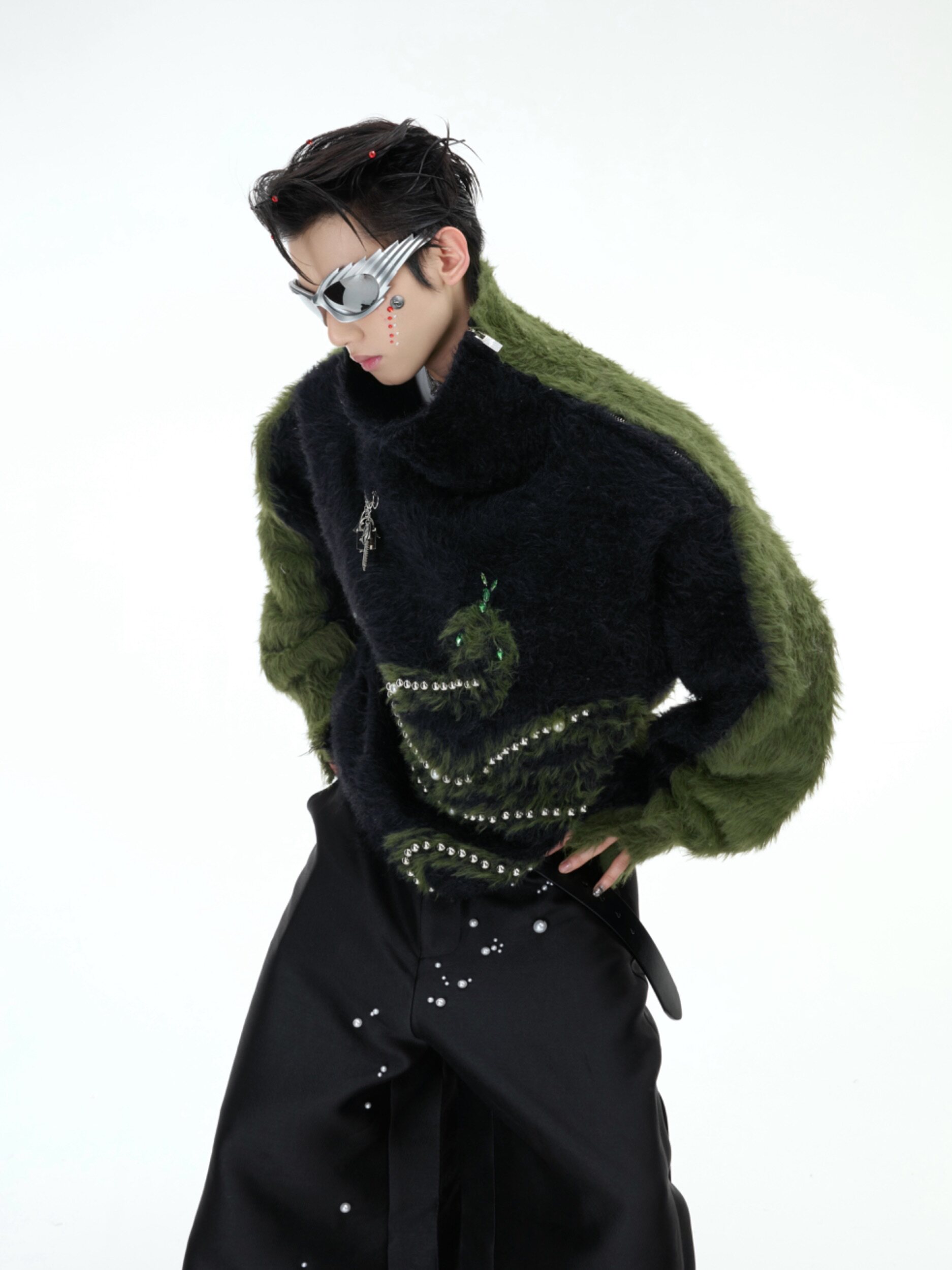 Argueculture Winter Spirit Niche Anti-Mink Fur Year of the Snake Pearl Embellished Sweater High Collar Plush Soft Top