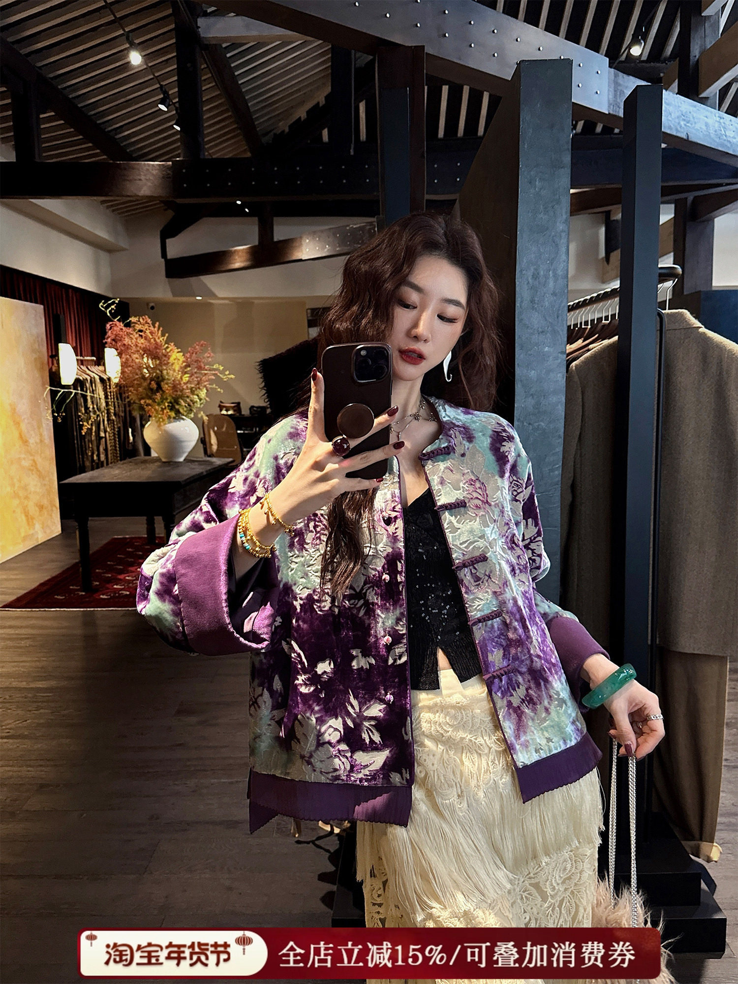 Sanji Heihua [Emeiqiu] New Chinese Style Velvet Burnout Early Autumn Coat for Women 2025 New National Style Unique Trend