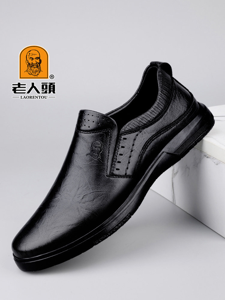 Old Man's Head Men's Genuine Leather Business Casual Shoes, Men's Spring and Autumn Breathable Handmade Thick-Soled Non-Slip Middle-Aged Dad Shoes