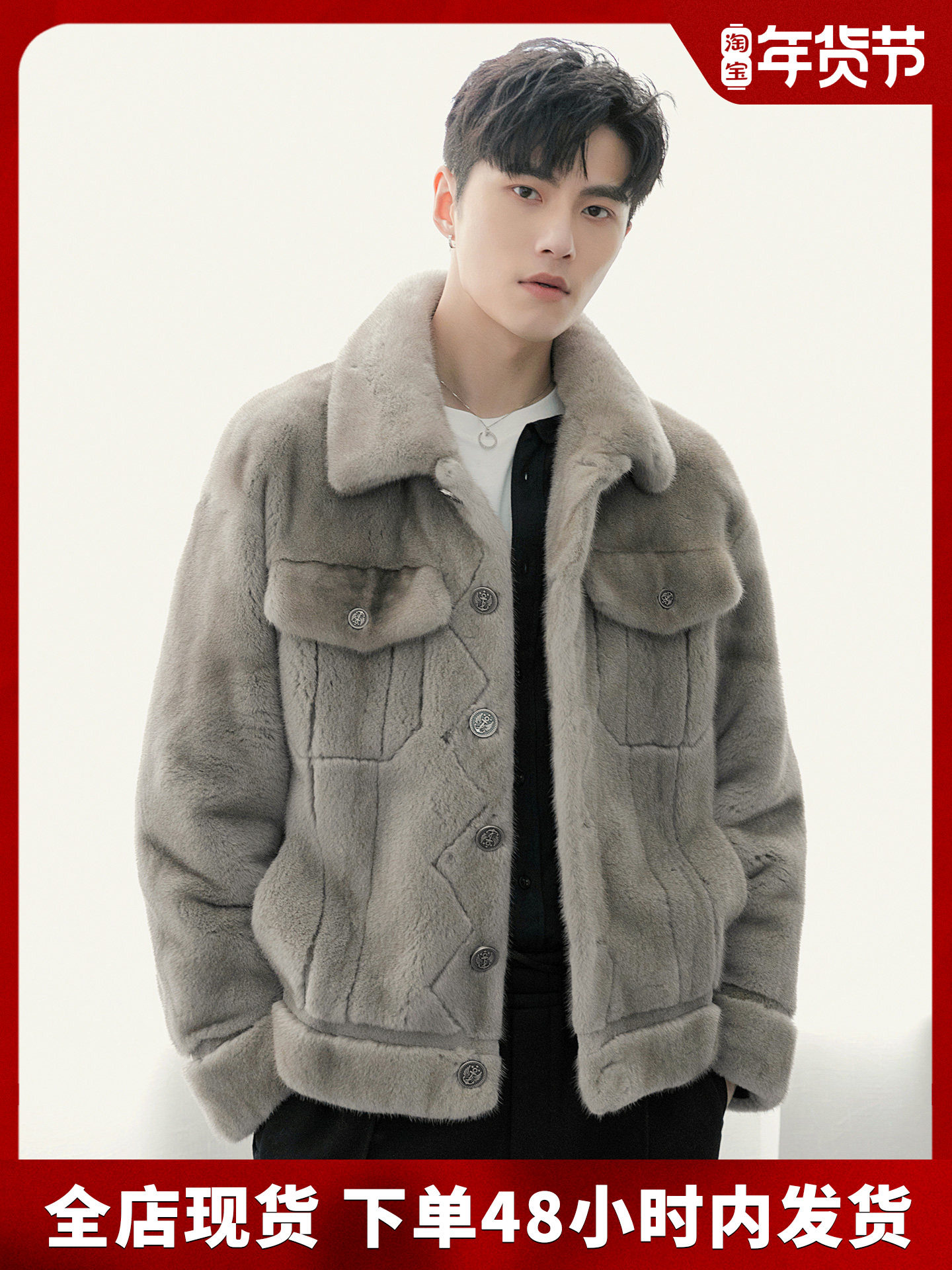 Mink Fur Coat for Men, Genuine Mink, Velvet Fur Integrated Mink Fur Coat, Haining Young Style Jacket