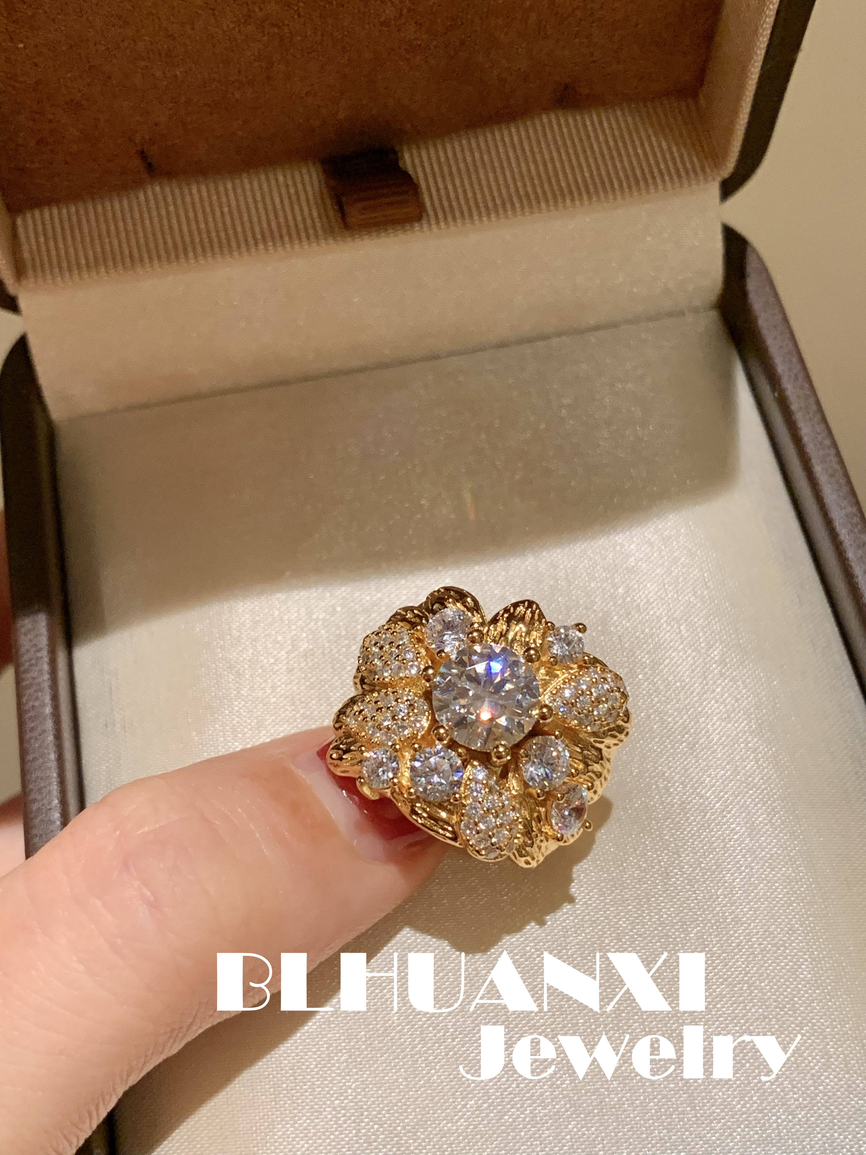 【Choose Joy】925 Silver Gold-Plated Moissanite Dazzling Star Italian Antique Jewelry Style 2 Carat Silver Ring 13g