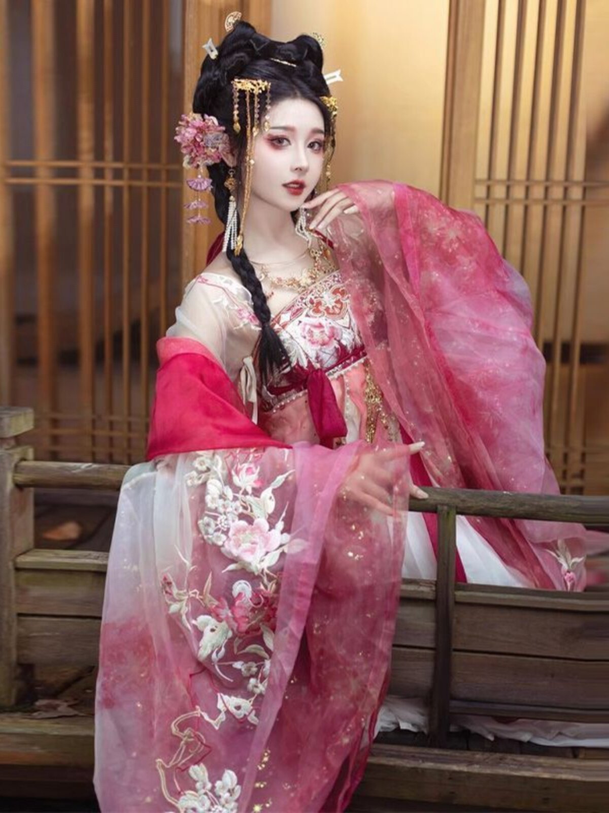2024 New Daji Han Dynasty Plum Color Chest-Length Halter Dress Skirt with Silk Large Sleeve Shirt Han Dynasty Women's Spring and Summer Suit