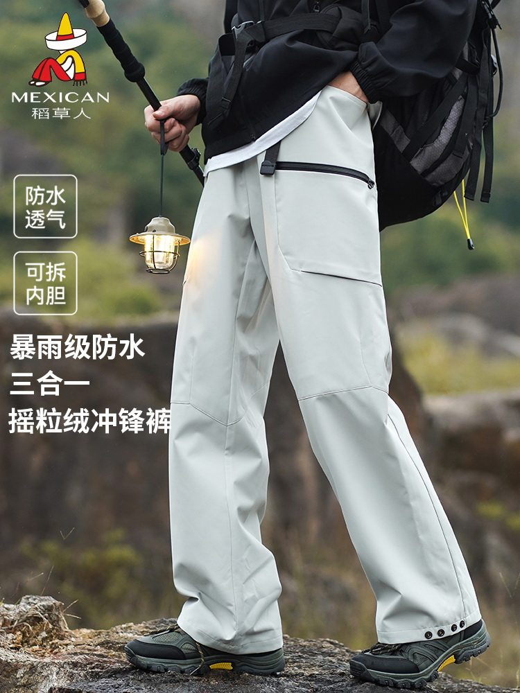 Scarecrow Genuine Fleece-Lined Three-In-One Detachable Softshell Pants for Men, Casual Hiking Pants, Windproof and Waterproof Work Pants for Women
