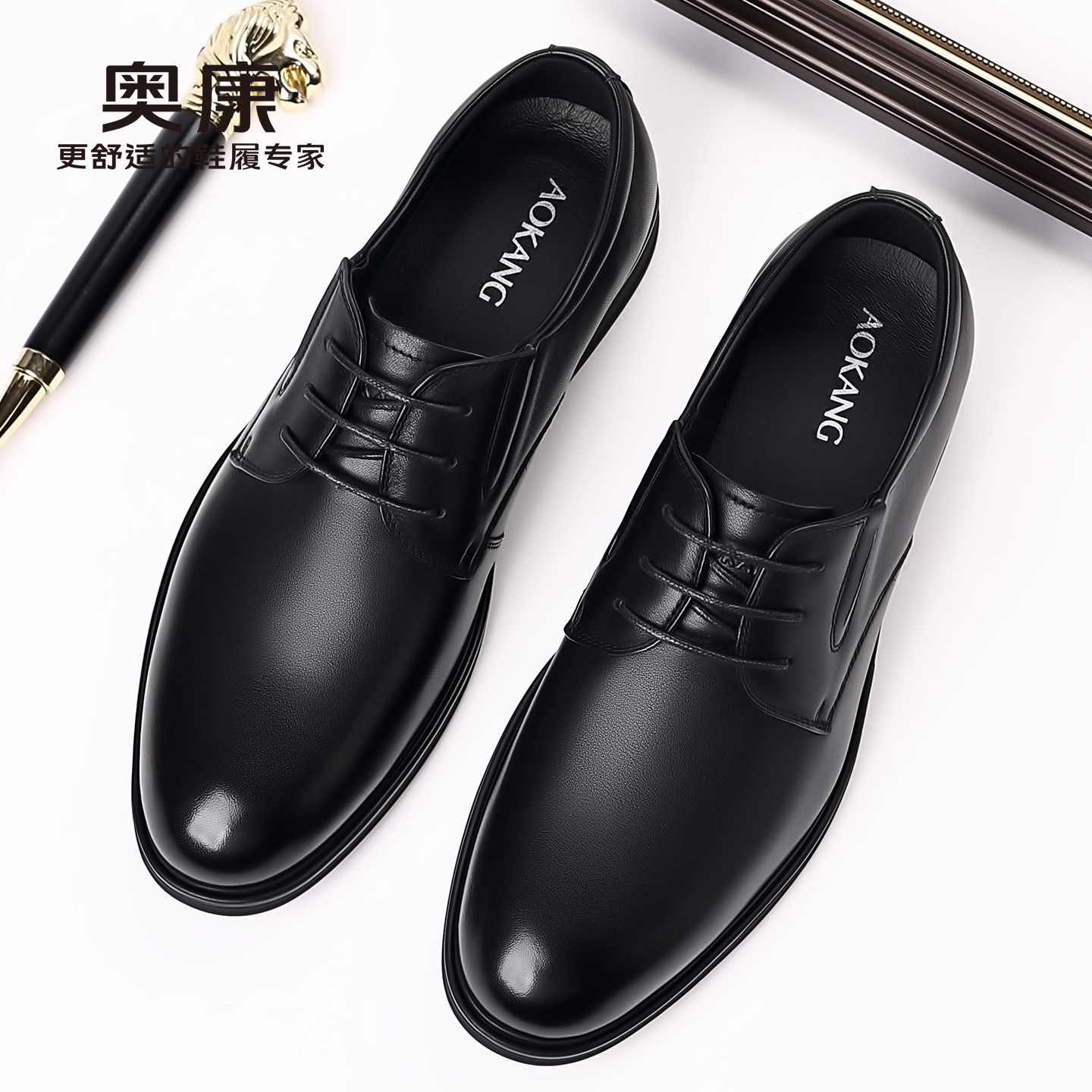 Aokang Official Genuine Leather Shoes for Men, Spring and Autumn New Style, British Business Formal Wear, Soft-Soled Genuine Leather Casual Shoes, Wedding Shoes