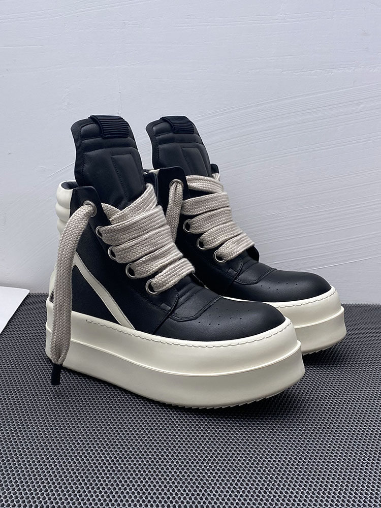 European Style High-Top Thick-Soled Shoes for Men, Inverted Triangle Genuine Leather Casual Men's 7cm Height-Increasing Sneakers, Women's Short Boots, Trendy