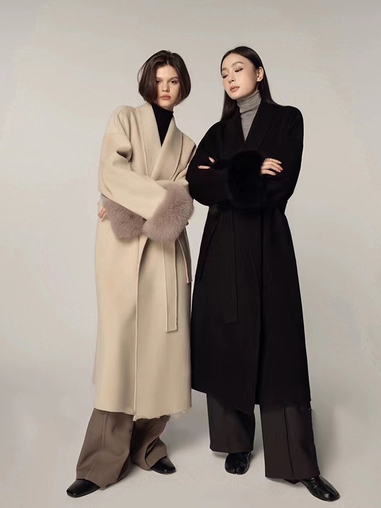 100% Sheep Wool Double-Sided Woolen Coat for Women with Detachable Real Fox Fur Tie, Luxurious Woolen Jacket for Autumn 2025