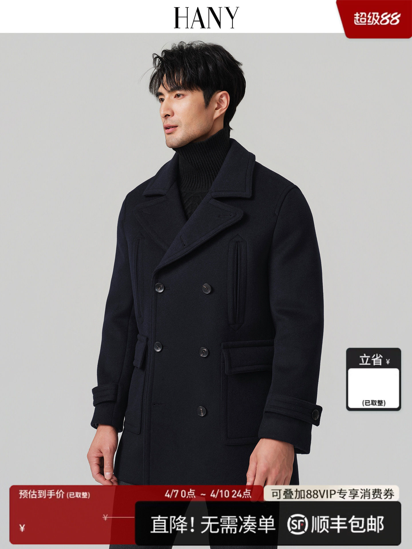 Hany [Ultra-Thick 100% Wool Navy Coat] Men's High-End Woolen Double-Breasted Warm Workwear Jacket for Autumn and Winter
