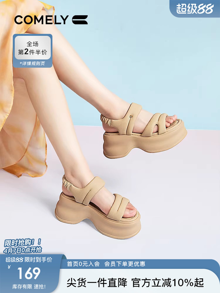Kangli Casual Sandals for Women, Thick-Soled, New Summer Style, Fashionable Elastic Band, soft sole Beach Sports Sandals