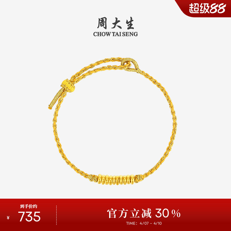 Zhou Dasheng Gold Good Luck Bracelet Pure Gold Hard Gold Beaded Bracelet Gold String Bracelet Gift for Girlfriend's Birthday