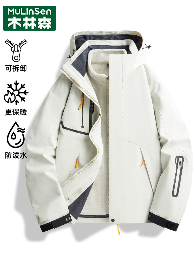 Mulinsen 2026 New Model Men's Spring Fleece-Lined Thickened Three-In-One Windproof Jacket Outdoor Mountaineering Clothing for Women