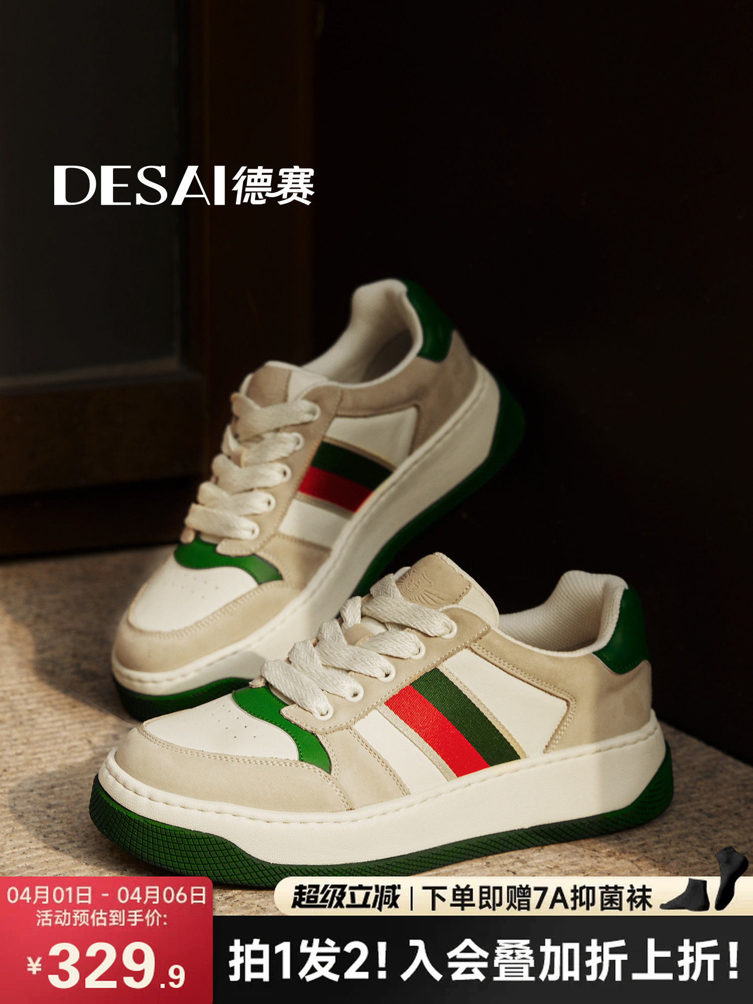 Desai 2026 New Spring and Summer Casual Shoes Thick-Soled Retro Versatile Soft-Soled Genuine Leather Sneakers Men's Couple Sports Shoes