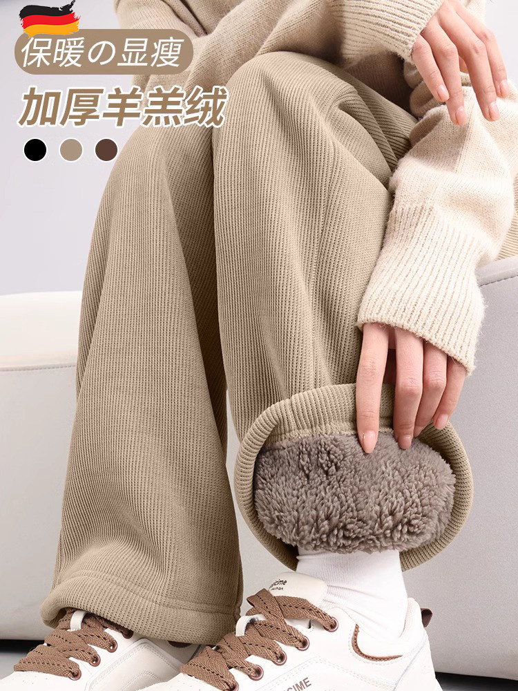 German Casual Pants, Loose Wide-Leg Pants, Lamb Wool Fleece-Lined Thickened Cotton Pants for Women, Autumn and Winter 2026 New Straight-Leg Pants