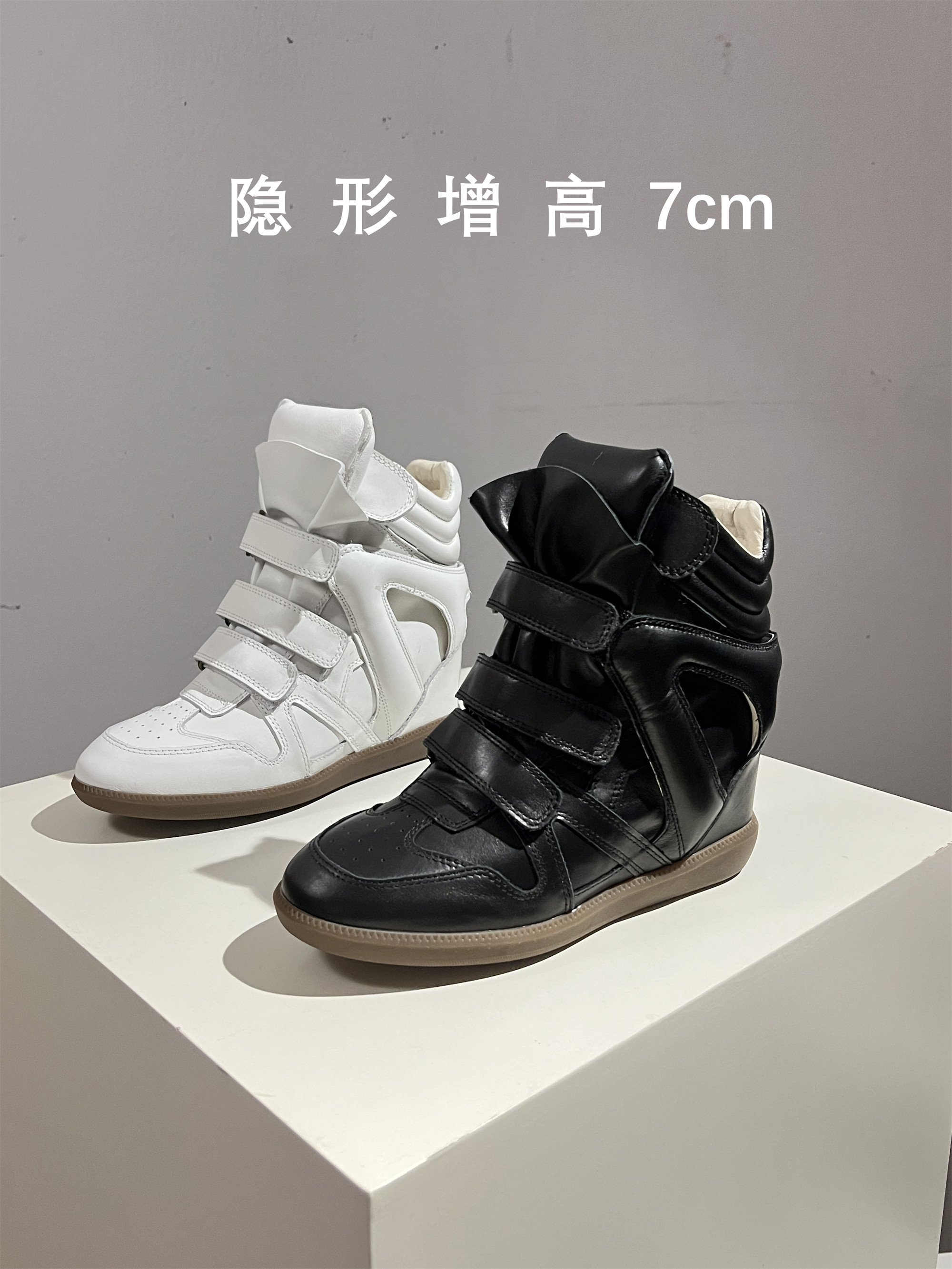 European Goods 2026 New Style Invisible Height-Increasing Women's Shoes 7cm Genuine Leather for Petite Women, Comfortable and Not Tiring, Velcro Casual Shoes for Women