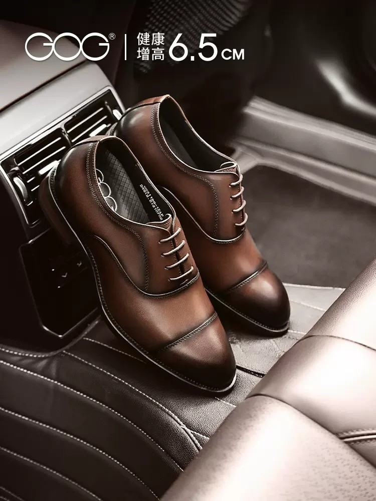 Gaoge Height-Increasing Shoes 6.5cm Genuine Leather Men's Business Leather Shoes Invisible Inner Height Increase Derby Shoes British Casual Leather Shoes