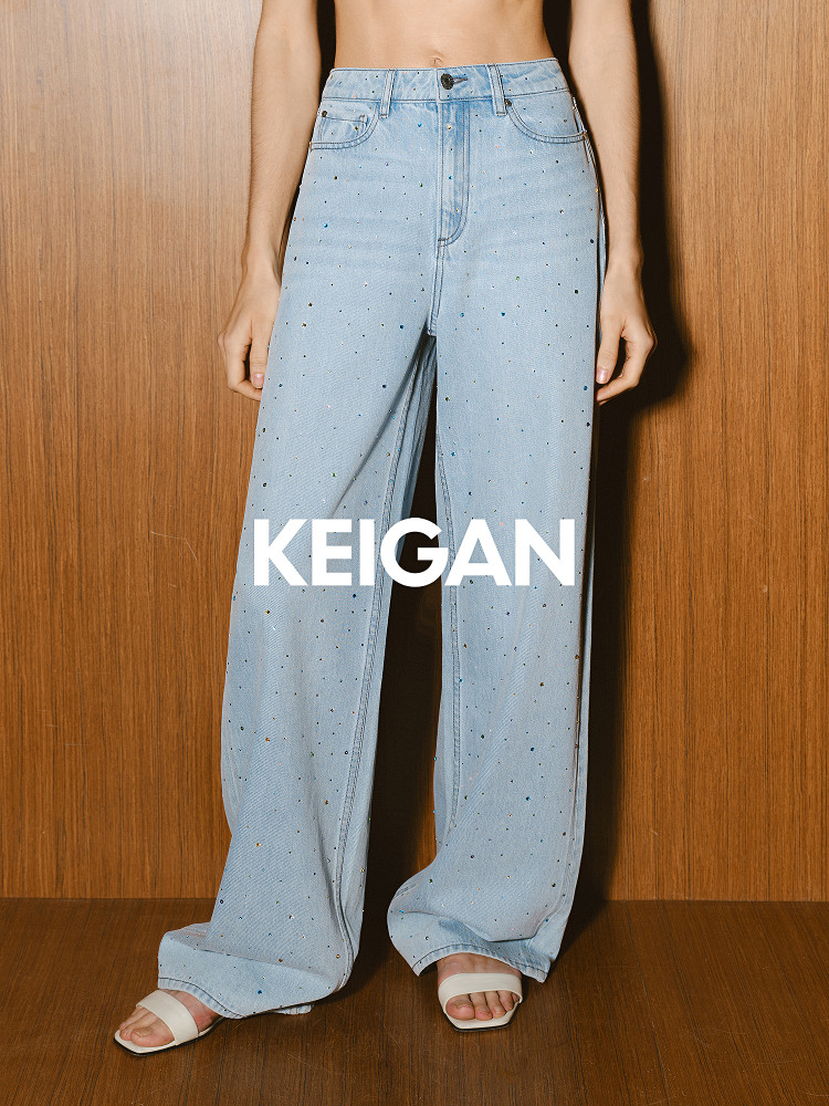 Premium Quality/Imported from Europe, Heavy-Duty High-End Fashion, Embellished with Rhinestones, Stylish Loose Straight-Leg Jeans