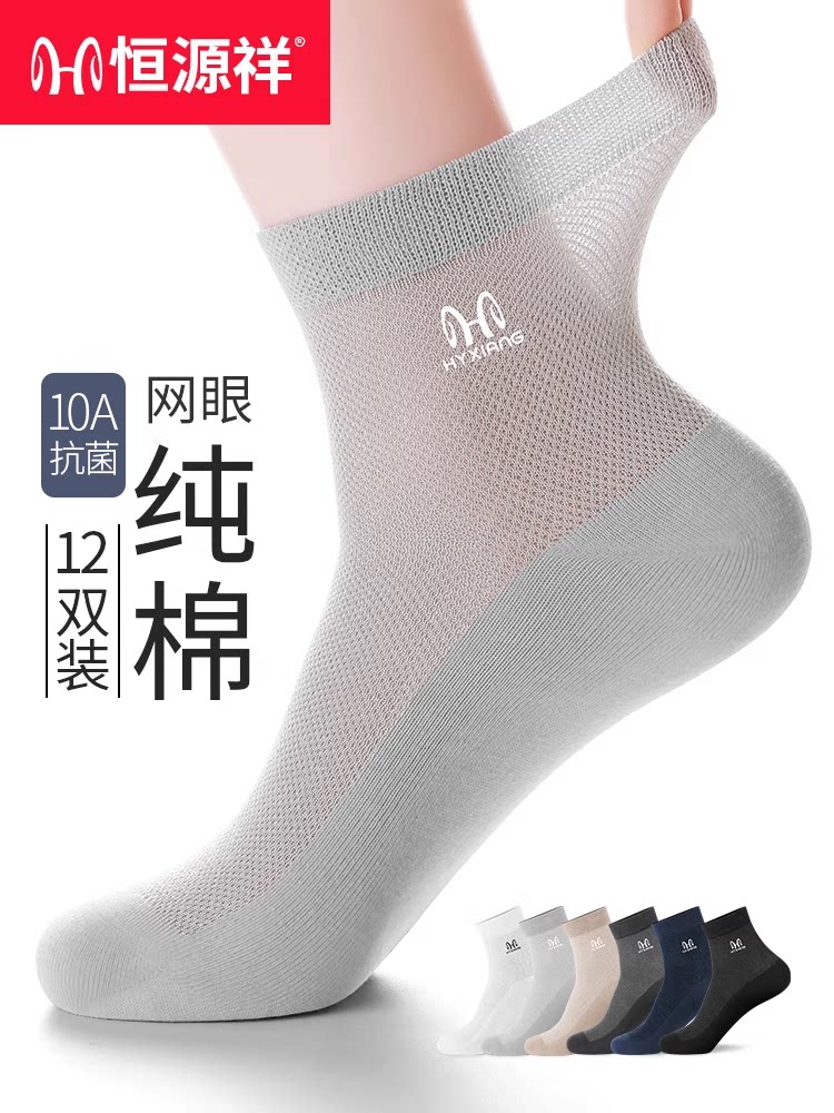 Hengyuanxiang Spring and Summer Pure Cotton Socks Men's Antibacterial and Deodorant All-Cotton Mid-Tube Socks Mesh Business Thin Long Socks 2026 Spring