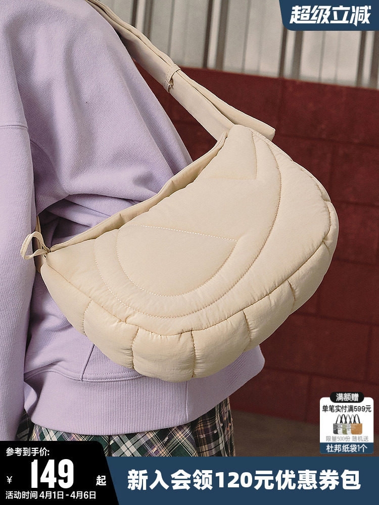 [Same Style as Ding Yuxi] Champion Single-Shoulder Backpack for Women, Quilted Cloud Bag for Men, Lightweight and Fashionable Crossbody Bag