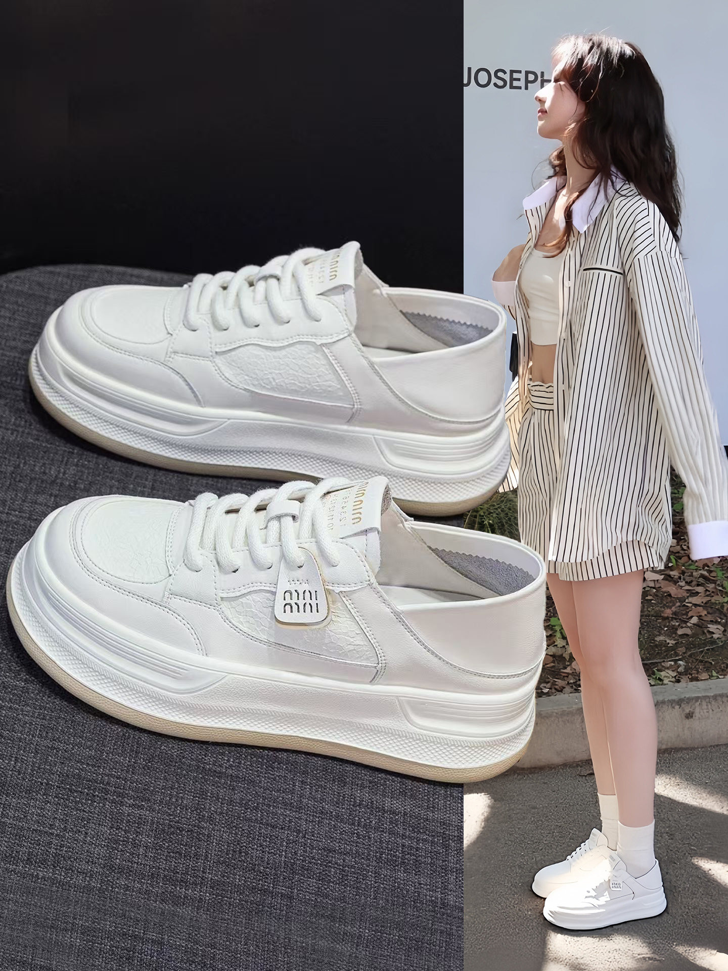 Hong Kong Genuine Leather Two-Way Wear Thick-Soled Height-Increasing White Sneakers for Women 2026 Spring and Autumn New Platform Casual Sports Sneakers Korean Style