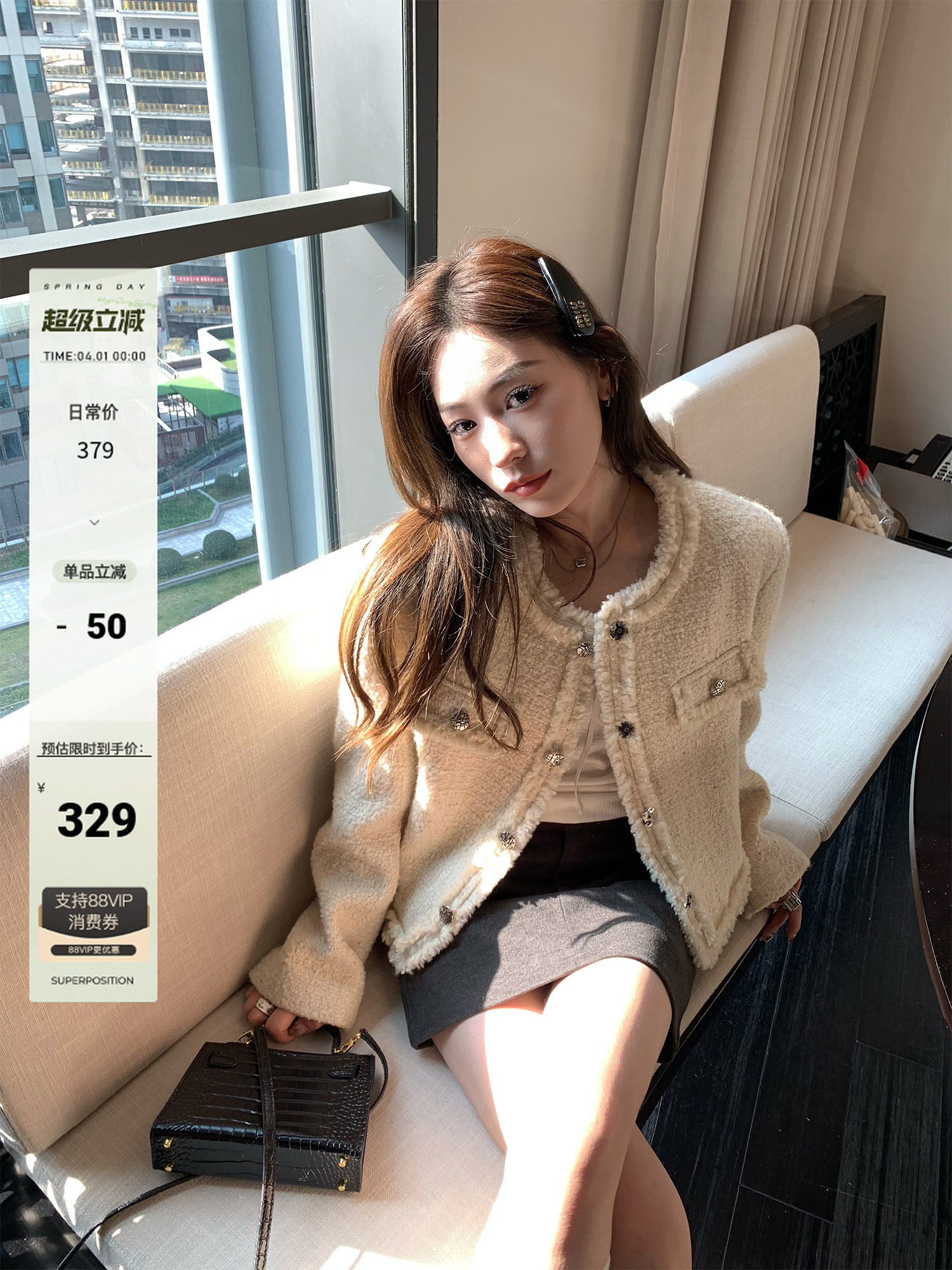 Hhyii Exquisite Madeleine Off-White Chanel-Style Jacket for Women 2026 Spring and Autumn High-End Elegant Short Top