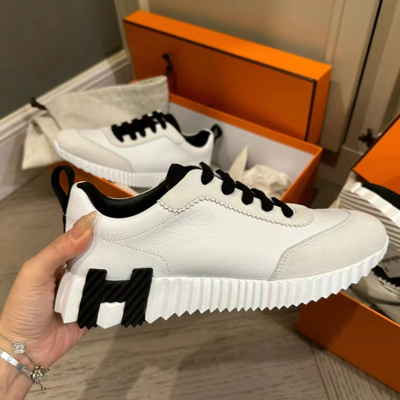 Bouncing Sneakers for Women Spring and Summer 2026 New H Brand Retro Casual Shoes Couple Thick-Soled White Shoes for Women