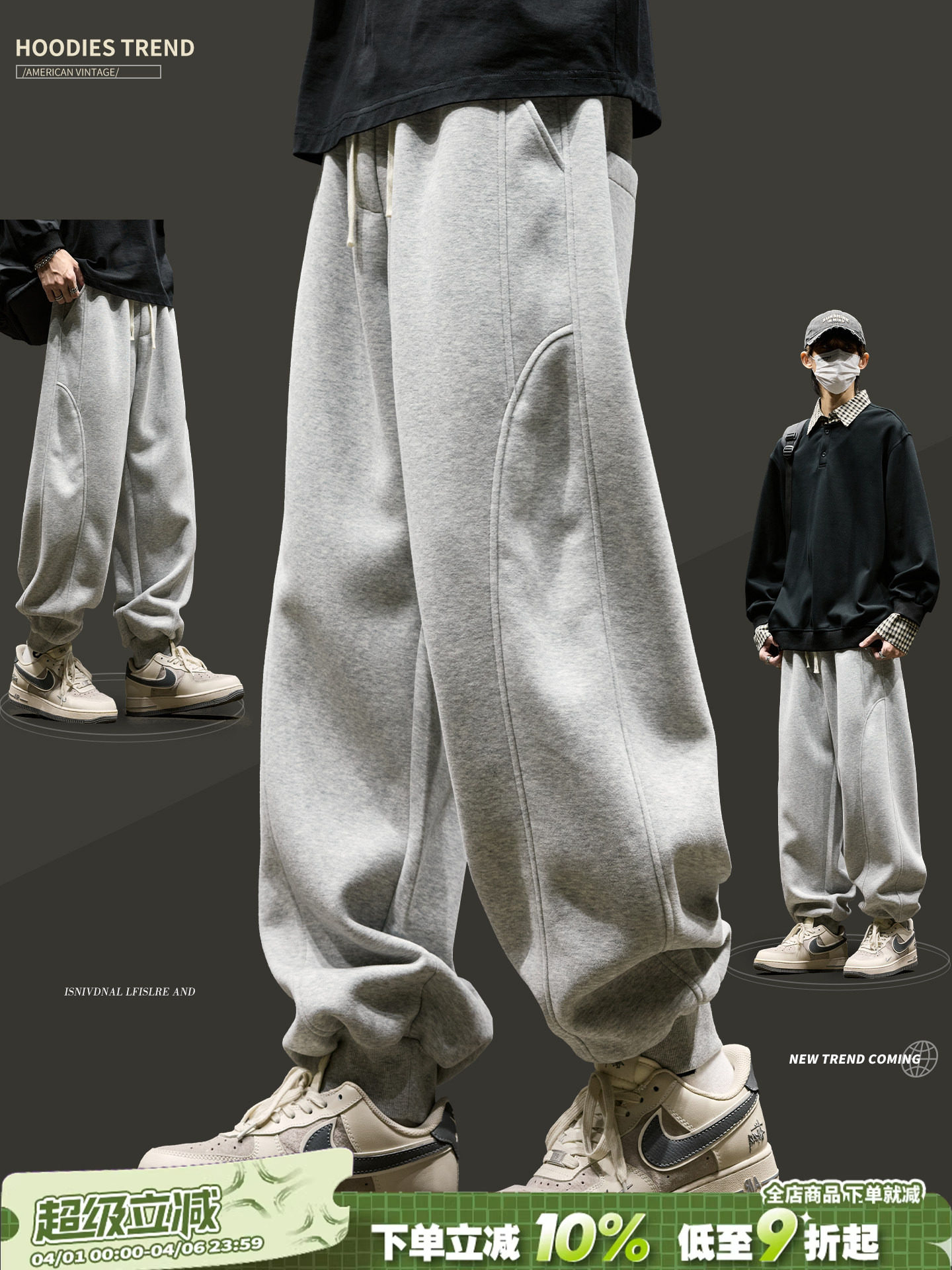 Heavyweight Sweatpants for Men, New Spring and Autumn Design, American-Style Curved Knife Pants, Trendy Brand, Loose Fit, Sports Casual Jogger Pants